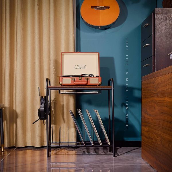 Record player stand with storage. After my long research on the market, record player stand vintage decided to use a combination of brown wood grain and metal bracket, thus highlighting the rustic elements and modern silhouette, the unique industrial retro style design turntable stand suitable for any place in the room, which is a great addition and accent to add some kind of beauty to the space.