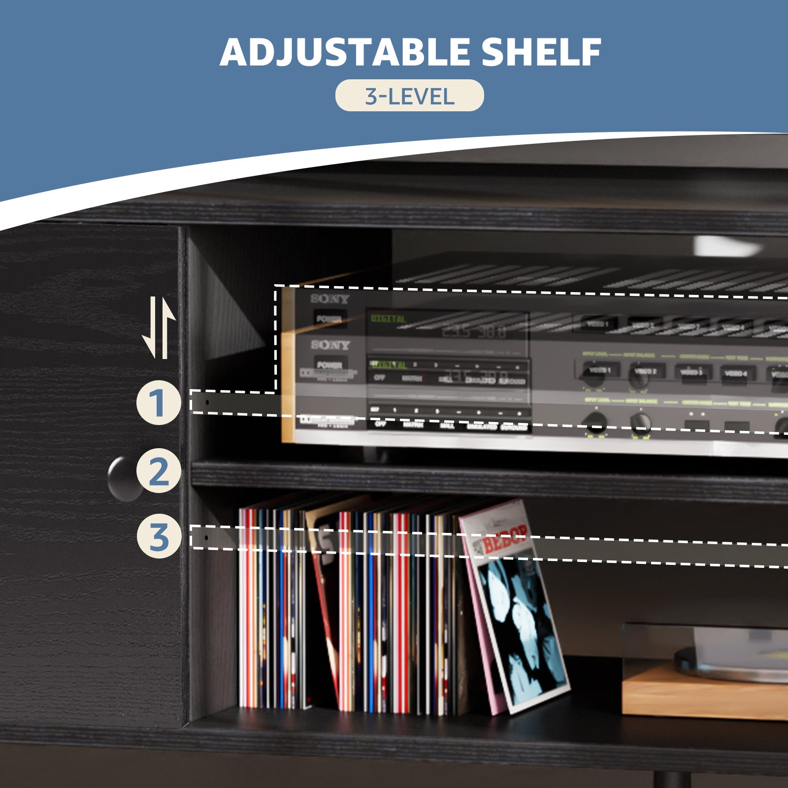 - Space Adjustment➤➤ The shelf of the console table can be freely adjusted, providing three different height levels to meet the space needs of different items. Flexible design allows you to create exclusive storage space.